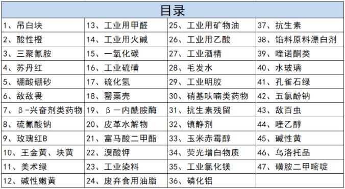 食品中可能違法添加的非食用物質(zhì)較多,食品企業(yè)在日常的原輔料采購驗收過程中宜對此進行一定的識別,今耀強食品就根據(jù)相關(guān)資料給大家做一下介紹,以供參考。 |